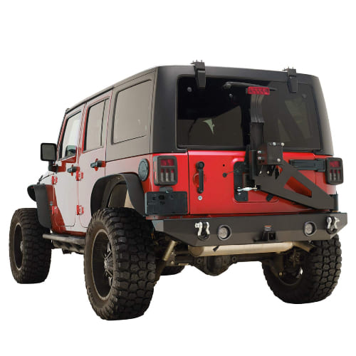 Constructed from durable steel alloys and finished with powder coating, these rear bumpers add utility and strength, especially for Jeeps without factory wheel carriers, ensuring your spare tire is secure on any terrain.